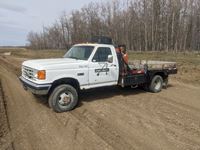 821A 1989 Ford F350 XL Regular Cab 4X4 S/A Flat Deck Truck