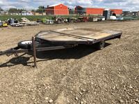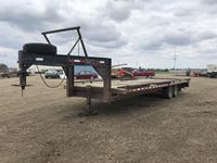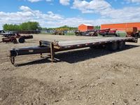8-1/2 ft wide x 25 ft long flat deck plus 2 ft tilt extension, c/w removable pipe bale rack sides, (2) 7000 l b axels, 235/85 R16 tires