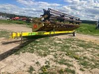 24 ft header, includes Bergen BHT3600 header wagon s/n 15281, straight cut header, finger reel with mechanical fore and aft. Header of NH TR98