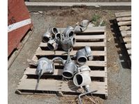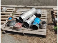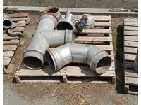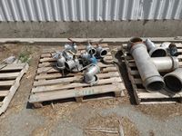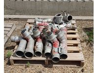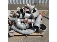 Miscellaneous sizes, 3 inch, 4 inch, 6 inch. Mostly main line connectors. Some salvage/bent pipes in stack.