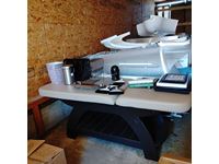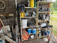 Various items in under cover and within 50 ft of Pole Shed Steel roofing Lumber Old farm equipment Old Bombardie snowmobile Take what you want Pole Shed not included