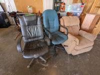 307 Recliner & (2) Office Chairs
