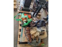 set of right hand golf clubs with pull cart, portable basket ball net, Power Flex 220 tension resistant bench