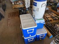 286 (3) 48 Quart Coleman Coolers, (1) Igloo Water Cooler, (1) Rubbermaid Cooler