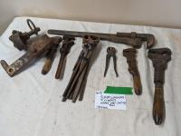 626 (5) Pipe Wrenches, (5) Nippers & Water Well Pulling Tool