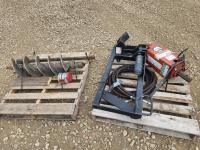 c/w drive motor, front end loader mounting frame (Euro connection), 12 inch x 4 ft auger, 2 inch x 4 ft hex bar extension, (2) 1/2 inch x 30 ft 5000psi hoses w/Pioneer quick couplers, one set of auger replacement teeth