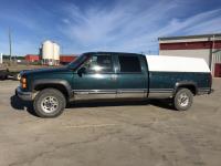 7.4 L, V8, gas, automatic transmission, P/S, P/W, P/L, A/C, 8 ft box, 8 ft white canopy with no back door, 235/85R16 tires