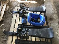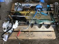 Jiffy 7 inch gas powered ice auger, 7 inch hand ice auger, fishing net, (2) reels, tundra toaster propane powered, bios weather gauge & tackle box