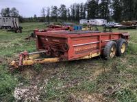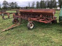 12 ft wide, 20-1/2 inch with 11 inch spacing in front, 24 inch discs with 11 inch spacing in rear, 11L15 tires