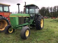 JD 265 FEL w/ 7 ft bucket & bale forks, 6 cylinder diesel engine, 15 speed powershift transmission,1000/540 PTO, (2) hydraulic outlets, 3 PT hitch, 16.9-26 front tires, 20.8-38 rear tires