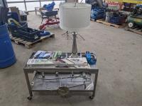 Metal rolling tray, (2) fridge rollers, (3) door knobs, lamp, light fixtures