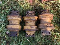 Toy crib, (2) rocking horses, toy vacuum, toddler walker, toy cars