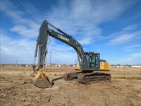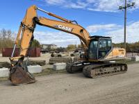 12 ft 6 inch stick, auxiliary hydraulic, Brandt 66 inch Q/C cleanup bucket, hydraulic thumb, A/C cab, cab screens, air ride seat, 31.5 inch triple grouser track pads, catwalks, positive air shutoff, Webasto heater