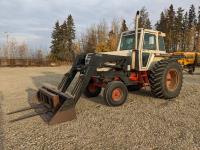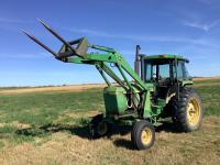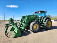 John Deere 746 loader with 96 inch grapple bucket, 220 HP engine, AutoQuad plus 20 speed transmission, left hand reverser, joystick, buddy seat, A/C, radio, 540/1000 PTO, (3) hydraulic outlets, 3pt hitch, 600/65R28 front tires, 710/70R38 rear tires