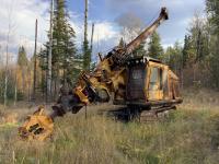 11 ft 11 inch stick, auxiliary hydraulic, Brandt 66 inch Q/C cleanup bucket, hydraulic thumb, A/C cab, cab screens, air ride seat, 31.5 inch triple grouser track pads, catwalks, positive air shutoff, Webasto heater