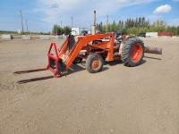 Twin cylinder water cooled gas engine, hi/lo range, reverse, manual tilt box, 22.5X10-8 front & 25X13-9 rear tires