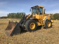 Craig 1-3/4 yard smooth bucket, hydraulic Q/A, 138 HP engine, 4 speed powershift transmission, auxilary hydraulic lines on both loader arms, AC, rear wiper, rear counter weight, operating weight 25,440 lb, Michelin 20.5R25 tires