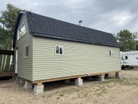 7 ft walls, vinyl siding, fascia and soffit, shingles, 2X4 walls on 24 inch centers, shingles roof, 2X6 floor on 16 inch centers, 3/4 inch plywood floor, insulated floor, plywood on the bottom barn style truss, fully Insulated with Ruxal Insulation, 36 inch doors, laminate flooring, 24 inch x 24 inch slider window, 36 inch x 30 inch slider window with a screen