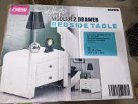 1605 White Modern 2 Drawer Bedside Table (Unused)