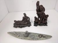 1614 Inuit Soap Stove Carving and (2) Chinese Figurines