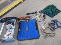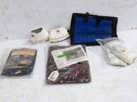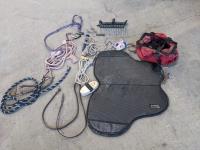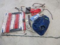Leads, bits, vet supplies, saddle blanket