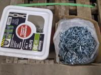 (9) Totes of miscellaneous nails and (5) bags of polymeric jointing sand