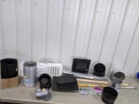 Vent covers, air filters, rack, outdoor light fixtures, roll of coax cable and cable connectors