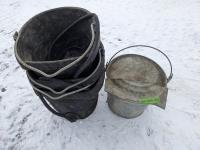 1132 (3) Heated Rubber Water Pails & Metal Chicken Waterer Pail