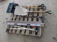 1000 Qty of Misc Shovels, Levels, Clamps, Pressure Washer Gun, Hinges