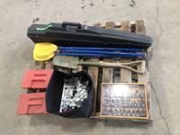 Gun case, (3) oars, shovel, assorted PVC fittings, (2) poly tool boxes, rotor bit set (missing 4 bits)