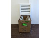 (3) boxes of flexible conduit, (2) boxes of electrical boxes, (2) floor registers, (2) boxes of low voltage wire, (4) metal panels, square breaker panel covers