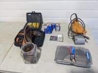 Kids toy box and bench, miscellaneous. Gloves, electric Wayner power painter, Black and Decker w/ 300 battery charger.