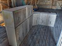 (1) 11 inch deep X 29 inch wide X 79 inch high, (1) curved shelf, 14 inch deep X 23 inch wide X 80 inch high