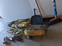 (2) Collars, neck yoke, bridle & head stall, (2) curry combs, horse shoes