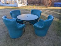 18 6 Plastic Chairs and Side Table