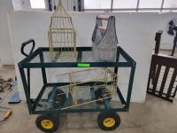 1879 Metal Cart, Cage and Tin Basket