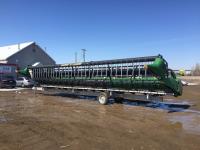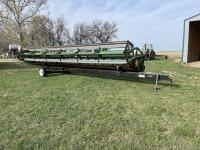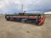 pickup reels, double knife drive, cross auger, poly skid plates, split pickup reel, hydraulic fore & aft, AWS air bar air reel, factory transport