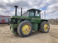 John Deere 4.5 L 4 cylinder 99 HP, diesel engine, 16 speed fully synchronized transmission, 21 GPM hydraulic pump, cab, left hand reverser, 540/1000 PTO, 2 rear hydraulic outlets, 380/85R24 front tires, 460/85R38 rear tires