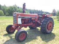 International 6 cylinder engine, hydro transmission, (3) spool front hydraulic couplers, 540 PTO, 2 rear hydraulic outlets, shopbuilt rear 3 pt hitch, 18.4X34 rear tires
