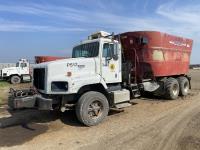 Cummins ISX02 6 cylinder 450 HP diesel engine, engine brake, Allison automatic transmission, cruise control, Supreme 1400TTM Feed Box, Reliable 300 cab scale, rubber block suspension, 10,433 lb front axle, 46,000 lb rear axles, diff lock, 244 inch WB, aluminum front wheels, 385/65R22.5 front tires, 700/40-22.5 rear tires