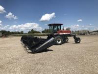 2008 MacDon PW7 14 ft pick-up header, variable speed reel, auto header height, fore & aft, rock trap, yield & moisture, fine cut chopper, grain tank extensions, A/C, buddy seat, 800/70R38 front tires, 600/65R28 rear tires