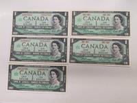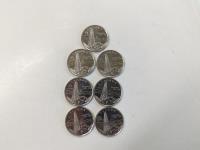 This set shows the first of teh pure nickel coinage produced by the Royal Canadian Mint in values 5c to $1.00. Also the emergency 10c and 25c 50% silver, 50% copper coins of 1968
