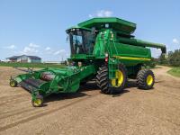 2004 John Deere 914P 14 ft pick-up header, variable speed reel, fore & aft, reverser, chopper, 22 ft auger, Big Top Hopper extensions, A/C, buddy seat, ATU auto steer ready, 800/70R38 front tires, 28L-26 rear tires