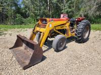 Du-Al loader, 58 inch bucket, 3 speed transmission, 3 PT hitch, 540 PTO, chains, drawbar, 6.70-15 front tires, 12.4-28 rear tires