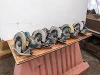 (5) Makita corded 210 mm circular saws, level, axe