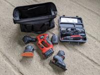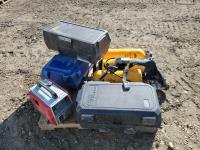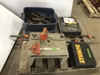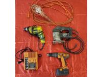 Ridgid 18 Volt Drill, Charger & Battery, Dewalt 3/8 Electric Drill<br/>Black & Decker Professional Jigsaw, Work light, Ridgid 1/2 inch 18 Volt Impact Driver, Battery & Charger, Black & Decker Router, Dewalt Circular Saw, 500 Watt Halogen Work Light