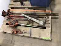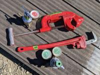 1127 24 Inch Ridgid Pipe Cutter, 24 Inch Pipe Wrench and (2) Regulators