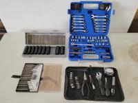 2593 Large Qty of Drill Bits, (5) Clamps, Allen Keys, Travel Iron and Painting Supplies
