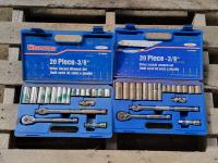 (2) Very Heavy Built Steel Boxes, lined with 1/2 inch Plywood Lockable, 15 inch Wide x 11 inch Deep x11 inch High, 25 inch Mastercraft Tool Box with See Through Lid Parts Storage, 19 inch Voyager Tool Box with See Through Lid Parts Storage