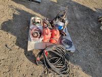 1 inch steel banding ratchet and crimper, crowbar, extension cord, hand saw, hose